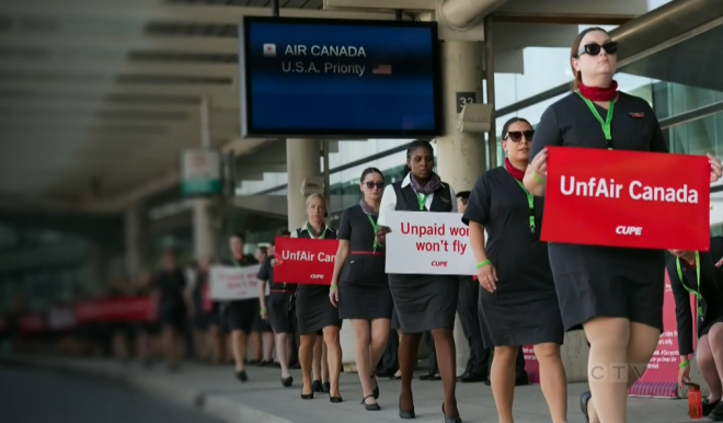 加拿大公共雇员工会(CUPE)周六早晨宣布,由于未能与航空公司达成协议,空乘人员已正式开始。