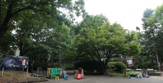该地块上设有儿童玩具和游乐设施,紧邻大温哥华地区政府持有的Strathearn Court家庭租赁住房项目。