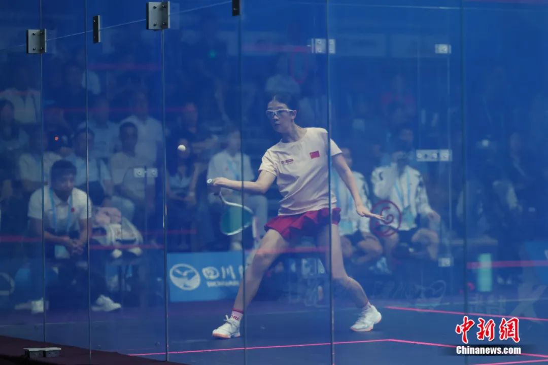 13岁的中国壁球选手殷子媛是成都世运会最年轻的选手。开学即将升入八年级的殷子媛,练球已有五年。