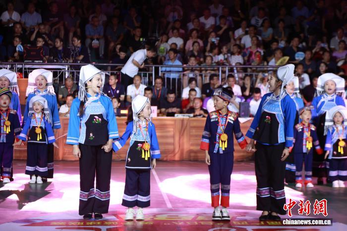当晚的活动中,东兰县体育馆内座无虚席,主办方现场依次展示了当地独具特色的山歌、铜鼓舞和狼兵舞蹈等节目。
