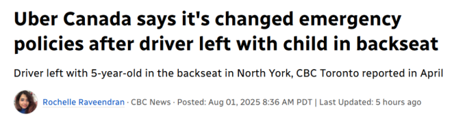 据CBC报道,今年3月在加拿大多伦多,一位母亲Julia Viscomi和5岁的女儿乘坐Uber回家。