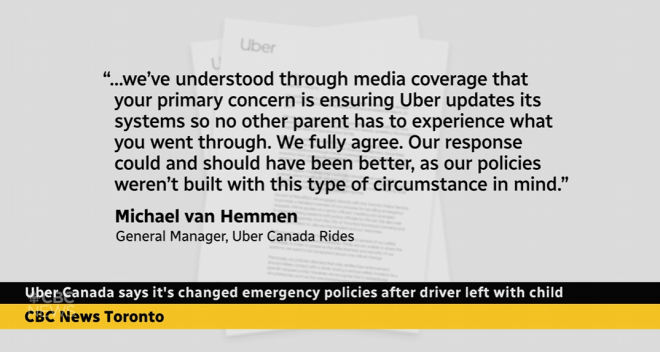在这整个过程中,Uber没有提供任何实质帮助。孩子找回后的第二天,她男友仅收到一封附有$10元代金券的道歉邮件。