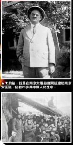 圖:1996年12月12日下午,在紐約曼哈頓洲際大飯店,約翰.拉貝外孫女萊茵哈特夫人(台上正中)向全球記者和學術界人士展示《拉貝日記》,為侵華日軍南京大屠殺暴行提供罕見第三方紀錄。下圖:約翰.拉貝在南京大屠殺期間組建起南京安全區,拯救20多萬中國人的生命。
