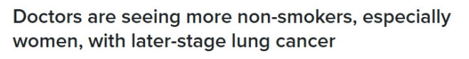 她的许多非吸烟患者是女性,但她说,人们根本没有意识到肺癌是一个女性健康问题。当非吸烟者来到诊室时,癌症往往已经到了晚期。