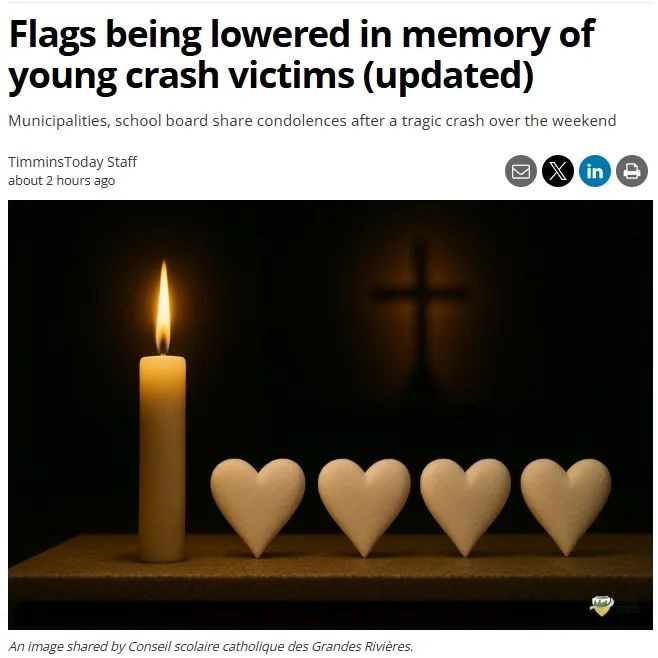 悲伤! 安省北部惨烈车祸, 四名16至20岁年轻人不幸丧生!