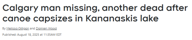 据阿尔伯塔皇家骑警(RCMP)通报,发生于8月17日(周六)傍晚6点30分左右,地点位于卡尔加里以西约70公里处的Barrier湖。
