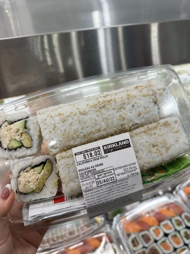 一盒16件加州卷,价格约18加元($22.99/kg)。