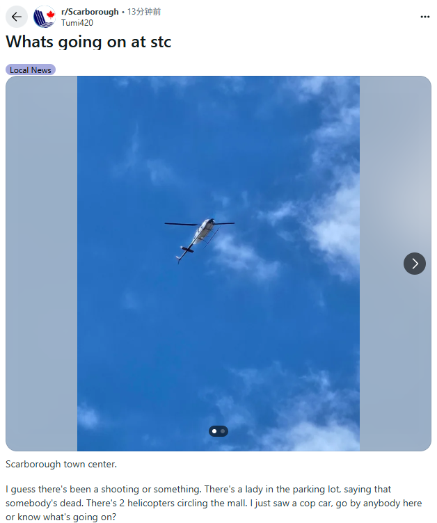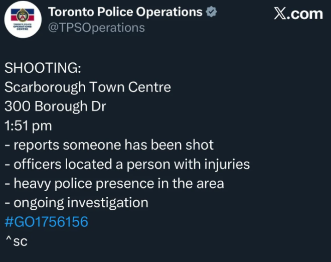 更新!士嘉堡STC购物中心美食广场旁枪击1人死亡