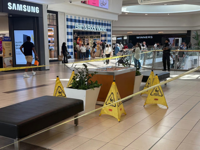 警方警戒线围绕着商场二楼的一个休息区。(Beatrice Vaisman/CP24提供)
