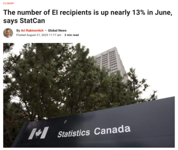 統計局的周四報告稱,2025年6月,領取EI福利的總人數增加了18,000人,達到541,000人。這比上個月增長了3.4%,比2024年6月高出12.8%。該機構還報告說,在今年前六個月,新增EI受益人總數增加了54,000人,增長了11%。
