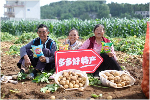 在云南昭通的乌蒙山腹地,当地盛产的黄心土豆口味好、营养丰富,一直都是村民的主要收入来源,因受限于地理位置,长期只能以初级农产品进行销售,产业附加值低。最近几年,拼多多商家在当地开设工厂,引进智能化生产设备,将昭通土豆研发出了不同口味的薯片,在平台的扶持下成功打开全国市场,初步形成了“网红薯片”的品牌效应,把小土豆做成了大产业,还带动当地1.1万户农民增产增收。
