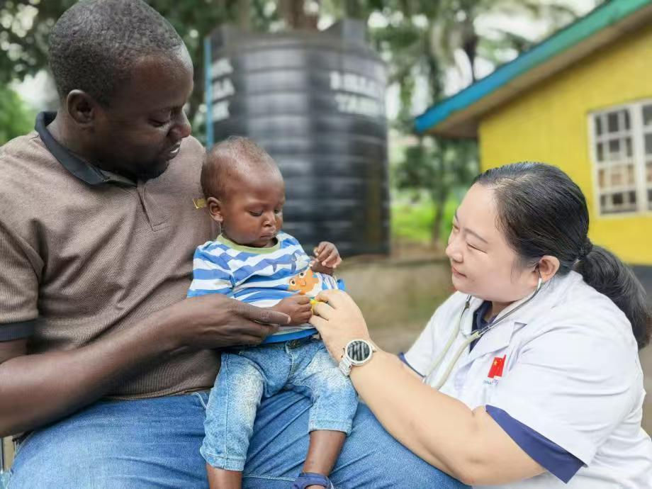 中国援助塞拉利昂医疗队专家为当地儿童看诊