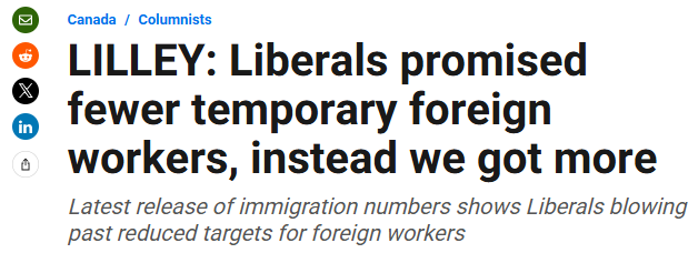 保守党抨击临时居民的涌入“极其鲁莽”,尤其是在高失业的情况下。他们还指出,卡尼自由党承诺降低永久居民人数,但即便如此,仍然高于加拿大历史平均水平。