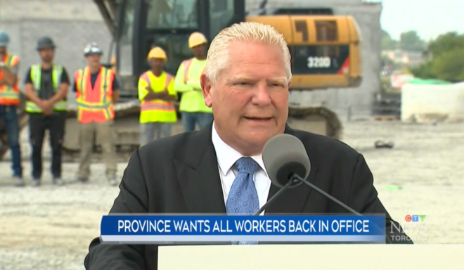 安省省长Doug Ford近日呼吁联邦政府效仿市的做法,要求每周五天返回办公室工作。