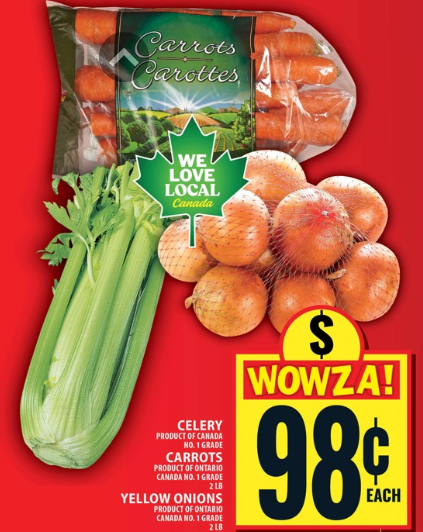 胡萝卜、洋葱、芹菜$0.98/袋(把)!
