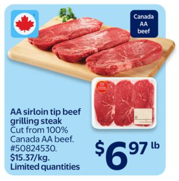 AA级西冷臀部牛排(适合烧烤)$6.97/lb!