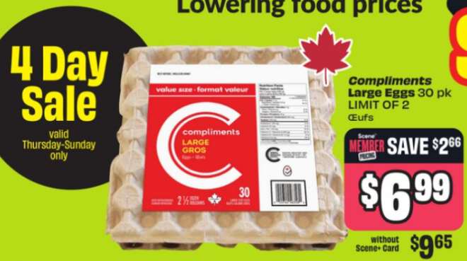 30颗大鸡蛋(会员价)$6.99,每盒限购2件!