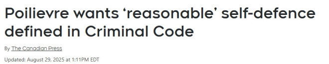 联邦保守党领袖博励治(Pierre Poilievre)周五表示,联邦政府应当修改《刑法》,在有人闯入家中时,默认使用武力保护家庭是“合理的”。