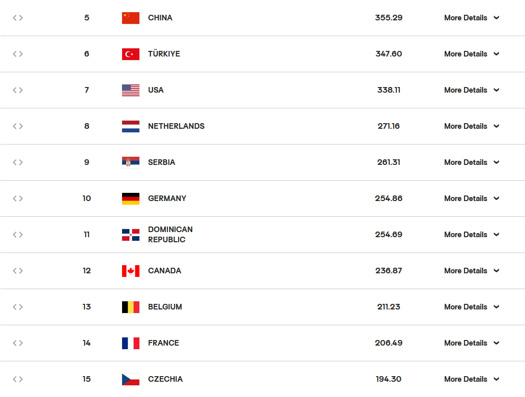 中国女排目前世界排名第五,法国女排位列第14。在巴黎奥运会小组赛和今年世联赛北京站比赛中,中国女排均以3:0横扫对手。不过,法国女排虽非传统劲旅,但球队在进入洛杉矶奥运周期后处于上升阶段,本次小组赛不敌巴西队是鏖战五局惜败,还是先赢两局后遗憾被逆转。