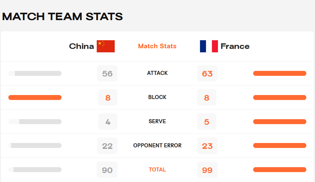 然而关键时刻,中国队又在卡绍特的发球轮连续丢分,好不容易追回的比分又再次被拉开。重获领先优势的法国队打得非常老练,最终以25:20获胜,队史首次入围世锦赛八强。