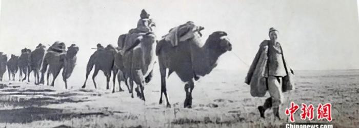 驿运运输通道上的驼队。新疆维吾尔自治区档案馆供图