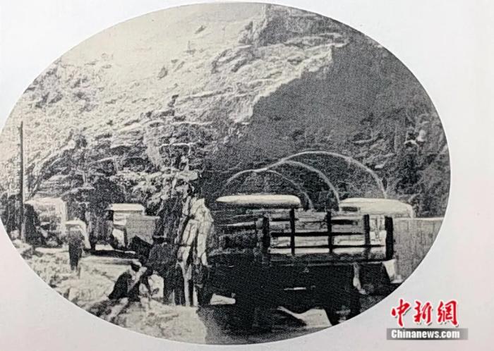 行进在山中的货车车队。新疆维吾尔自治区档案馆供图
