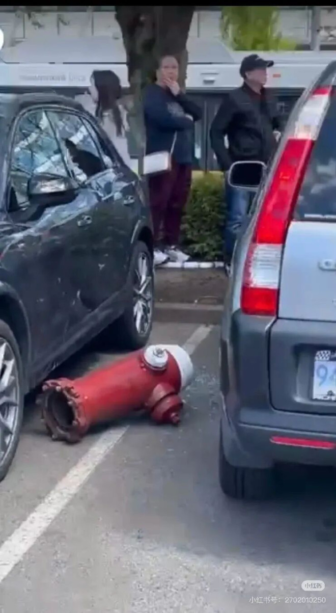 2025年5月,一辆汽车失控撞上路边消防栓,但还好水没有喷出来,网友吐槽:“据说消防栓是穿过其他车玻璃再飞过来的。”