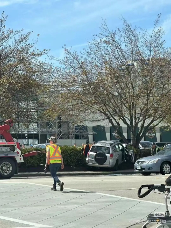 2025年5月下午2点,CF Richmond Centre附近发生一起车祸,飞上了附近的绿化带,现场还疑似撞到了一名路人奶奶。