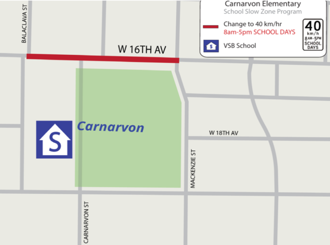 今年9月开学季,为了保护学生和行人的安全,温哥华进一步扩大了学校周边的“低速区域”范围,并陆续换上新的交通标识,例如,Tupper中学、Emily Carr小学、Eric Hamber中学等15所学校。