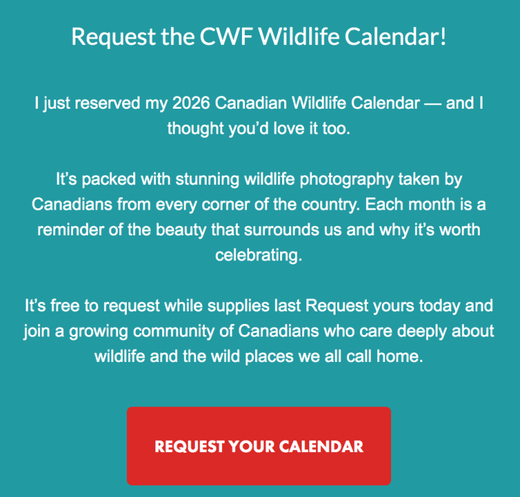 年度“零元購”頂級福利已上線!加拿大野生動物保護協會帶着他們免費的年度神仙掛曆來炸街啦!