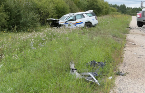 隨後在早上6點53分,皇家騎警證實,一輛正向北行駛前往案發現場的警方巡邏車,在一條省級公路上與嫌疑人駕駛的向南行駛的車輛相撞。