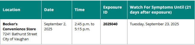 卫生局在新闻稿中表示,此次疫情与位于Bathurst St. 7241号(Clark Avenue以南)的Becker’s便利店有关。