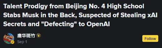 这一指控将事件的严重程序升级,如果属实,这意味着李雪辰可能掌握了xAI自成立以来几乎全部的技术成果。