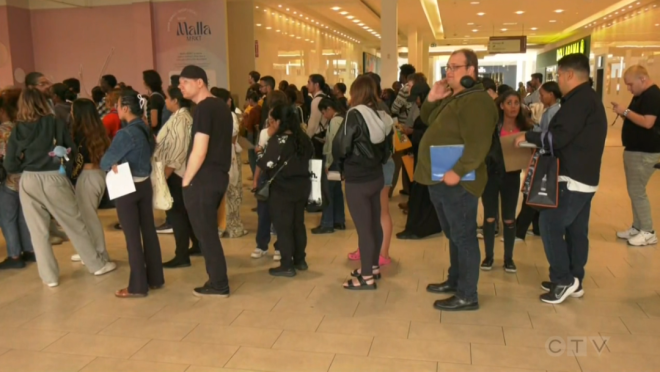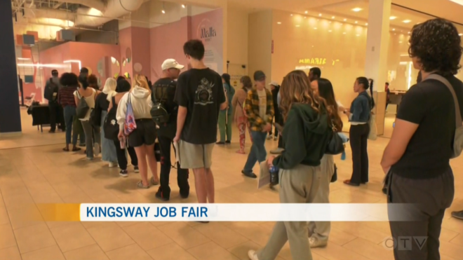 在埃德蒙顿Kingsway Mall购物中心周四(9月4日)举办的招聘会上,他只是求职者长队中的一个普通面孔。