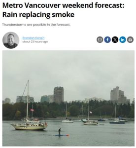 雖然這幾天大溫的天空依舊灰濛濛,但隨着周末雨水逐漸登場,大家最關心的空氣質量問題或許會慢慢緩解。只是,山火仍在燃燒,未來的空氣狀況依舊存在不確定性。