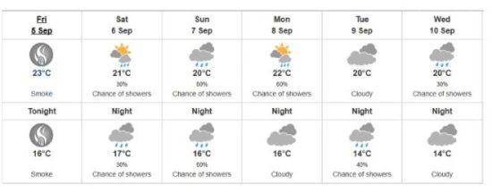 雨水的到來將逐步衝散籠罩在大溫上空的煙霧,不過由於缺乏強風,清理過程可能需要幾天時間。