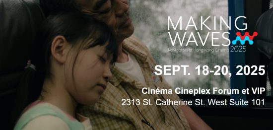 關於影展:“蒙特利爾躍動影展”(MAKING WAVES MONTREAL,簡稱MWM)由香港國際電影節協會(HKIFFS)主辦,攜手芝加哥亞洲快閃電影節(Asian Pop-Up Cinema)合作舉辦,由香港特別行政區文化創意產業發展署讚助,並得到香港駐多倫多經濟貿易辦事處的支持。MWM25聚焦新一代香港影人,展現他們充滿個性與創作熱情的作品。