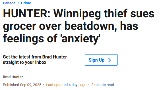 加拿大一名自称偷过超100万加元的“职业大盗”,居然把温尼伯一家小告上了法庭。理由简直离谱:他在行窃时被超市老板和店员“围殴”,落下了“焦虑、抑郁、自我价值感低落”,如今“已经不能工作”,不仅索要赔偿,还扬言要“伸张正义”。