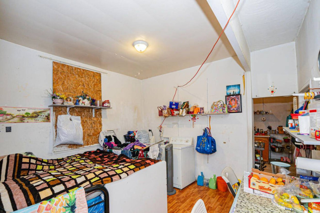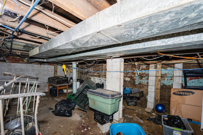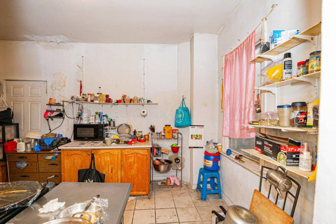 当然,它确实有点乱。餐厅里有一张床,窗户都是刨花板,天花板缺失,还有一个大人小孩都不敢进去的地下室。