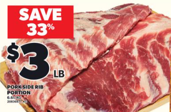 猪肋排(侧排)$3/lb!