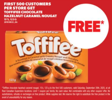 9月20日(周六)限时活动:前500名顾客可获得免费巧克力零食!