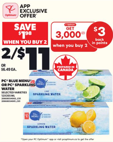 PC苏打水2箱$11,返3,000积分=$3,相当于2箱只要$8(24罐),也就是$4/箱(12罐)!