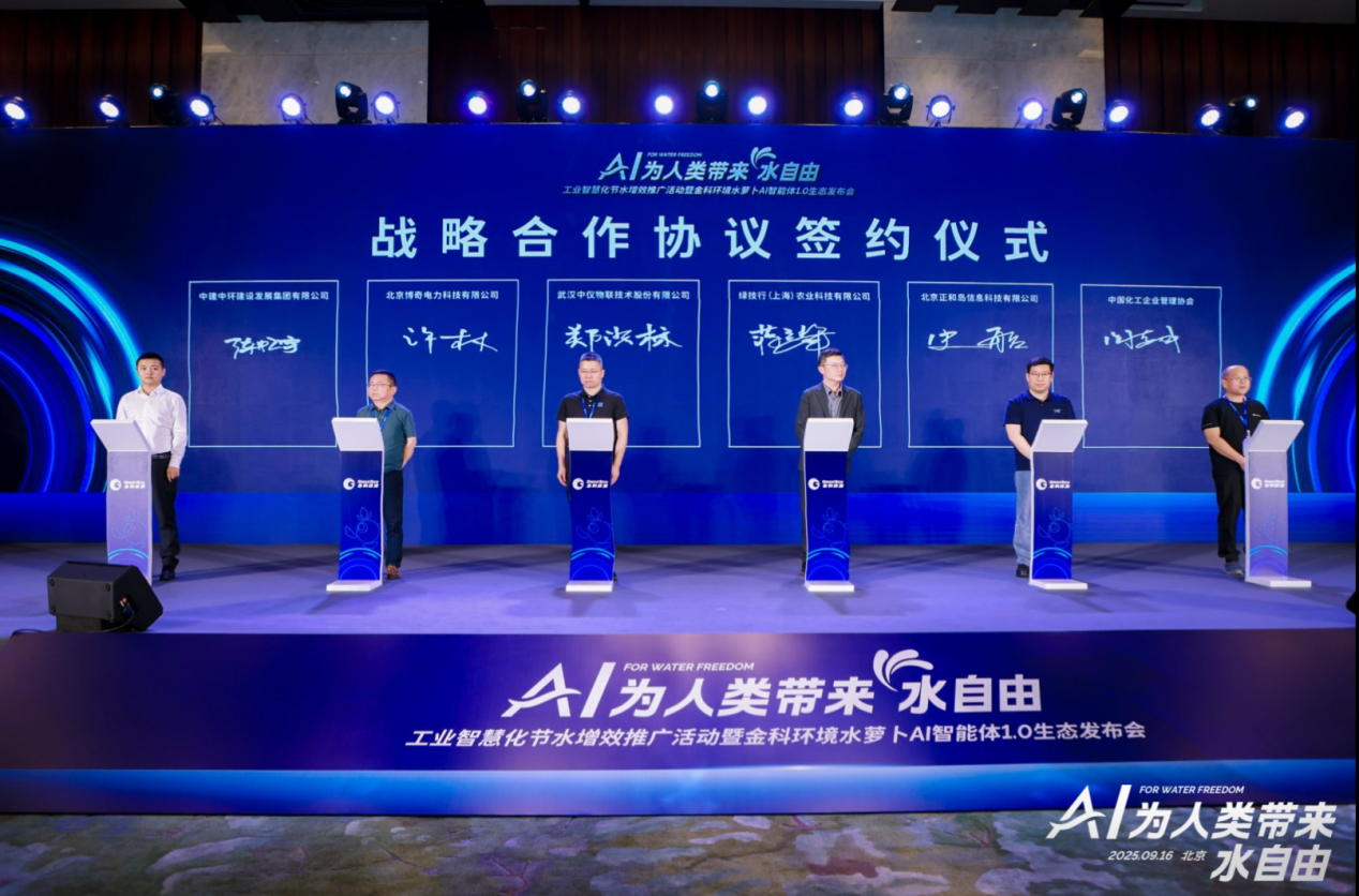 9月16日,由中国工业节能与清洁生产协会、金科环境股份有限公司、北京正和岛信息科技有限公司主办的“工业智慧化节水增效推广活动暨金科环境水萝卜AI智能体1.0生态发布会”,在北京隆重召开。