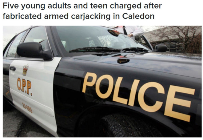 本月早些时候在卡利登(Caledon)被报道为“持枪劫车”的惊悚,如今以欺诈和公众恶作剧的罪名收场。警方表示,整起事件完全是自导自演,五人(包括一名17岁少年)已被起诉。