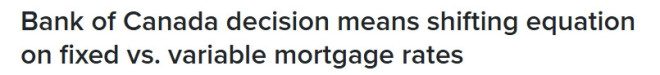 加拿大央行自3月以来首次降息,此举将直接影响浮动利率房贷,并可能改变选择固定还是浮动利率的“算账公式”。