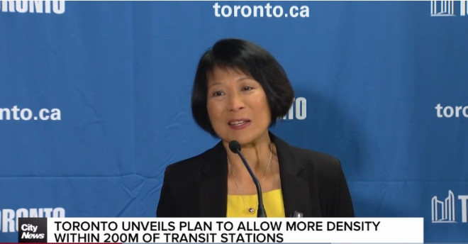 周四在市政厅的技术简报会上,市长邹至蕙(Olivia Chow)与多伦多新任首席规划师一起,详细说明了在120个交通枢纽周边提高密度和最大建筑高度将带来的变化。