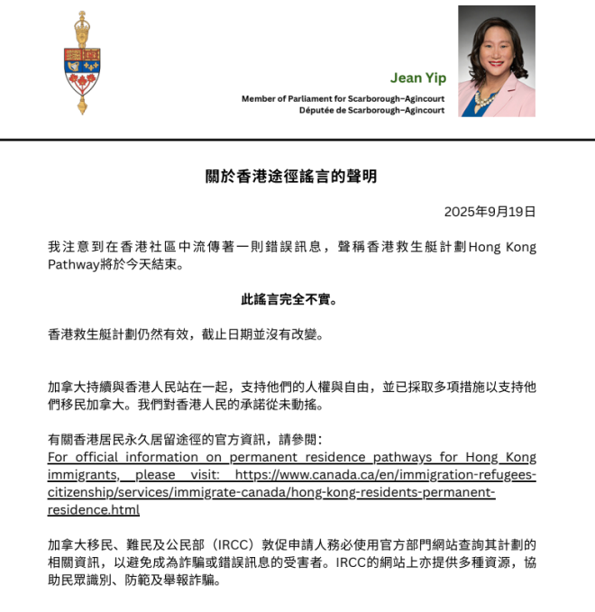 我注意到在⾹港社区中流传著⼀则错误讯息,声称⾹港救⽣艇计划Hong Kong Pathway将于今天结束。