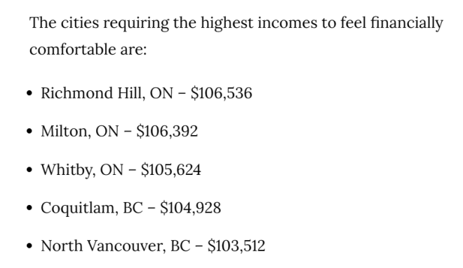 一份新报告分析了在加拿大不同过上“舒适生活”所需的收入,位列最“不舒适”居住地前三名都在安省,列治文山排名第一成为加拿大最“不舒适”居住地,而大温地区有几个城市被列为加拿大最“不舒适”的居住地之一。