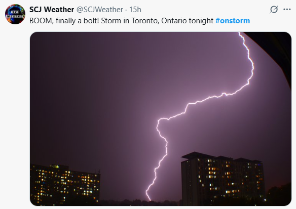 其實,這場風暴並不是突然襲來。加拿大環境部在當天早些時候就已發出嚴重天氣預警,稱從周日晚上到周一早上,安省南部將出現強雷暴天氣 ,風速可達每小時90公里,降雨量高達50毫米,甚至可能出現2厘米大的冰雹。