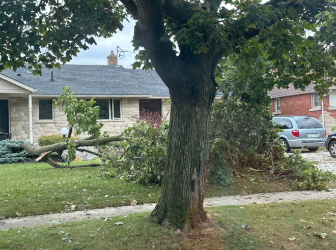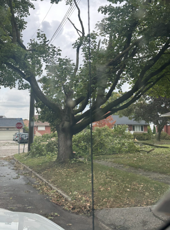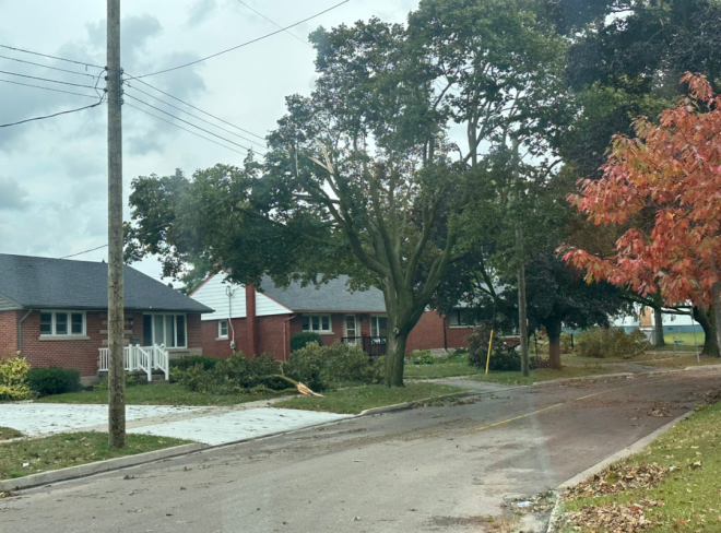 在滑鐵盧地區,這場風暴造成了樹木和電線的損壞。